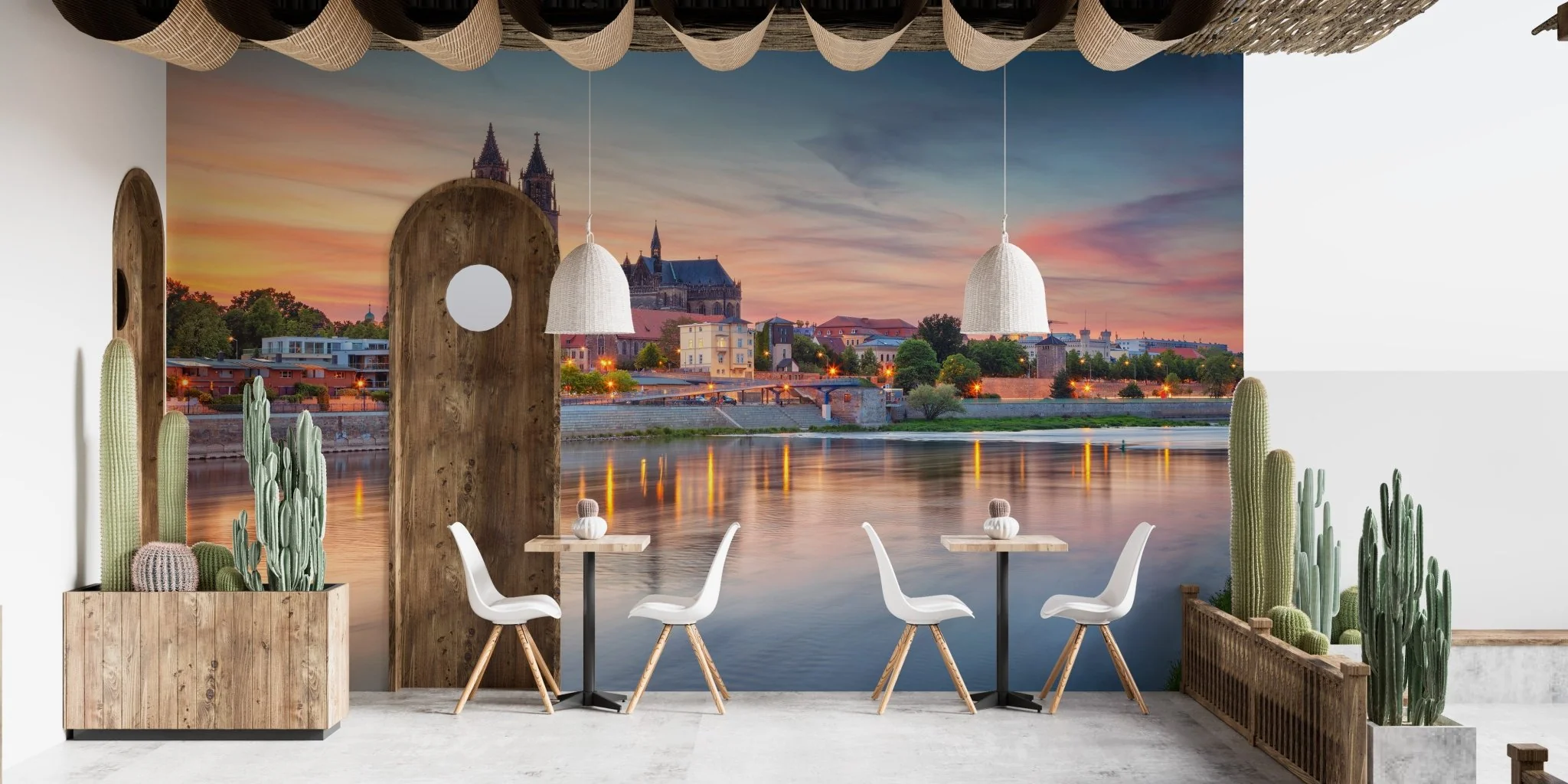 The Magical Magdeburg Wallpaper Mural captures the view of the ironically known city of Magdeburg. It features its historic architecture and vibrant atmosphere. Perfectly adding a touch of city life to any room, it may draw you either towards the details of the cathedral or scenic riverside, and it brings the beauty of Magdeburg to your walls. This city wallpaper is ideal for lovers of travel and culture or anyone who enjoys the vibrancy of the city. A lively, inviting mural in a bedroom, living room, or even home office can bring much-needed urban flair into decorating.