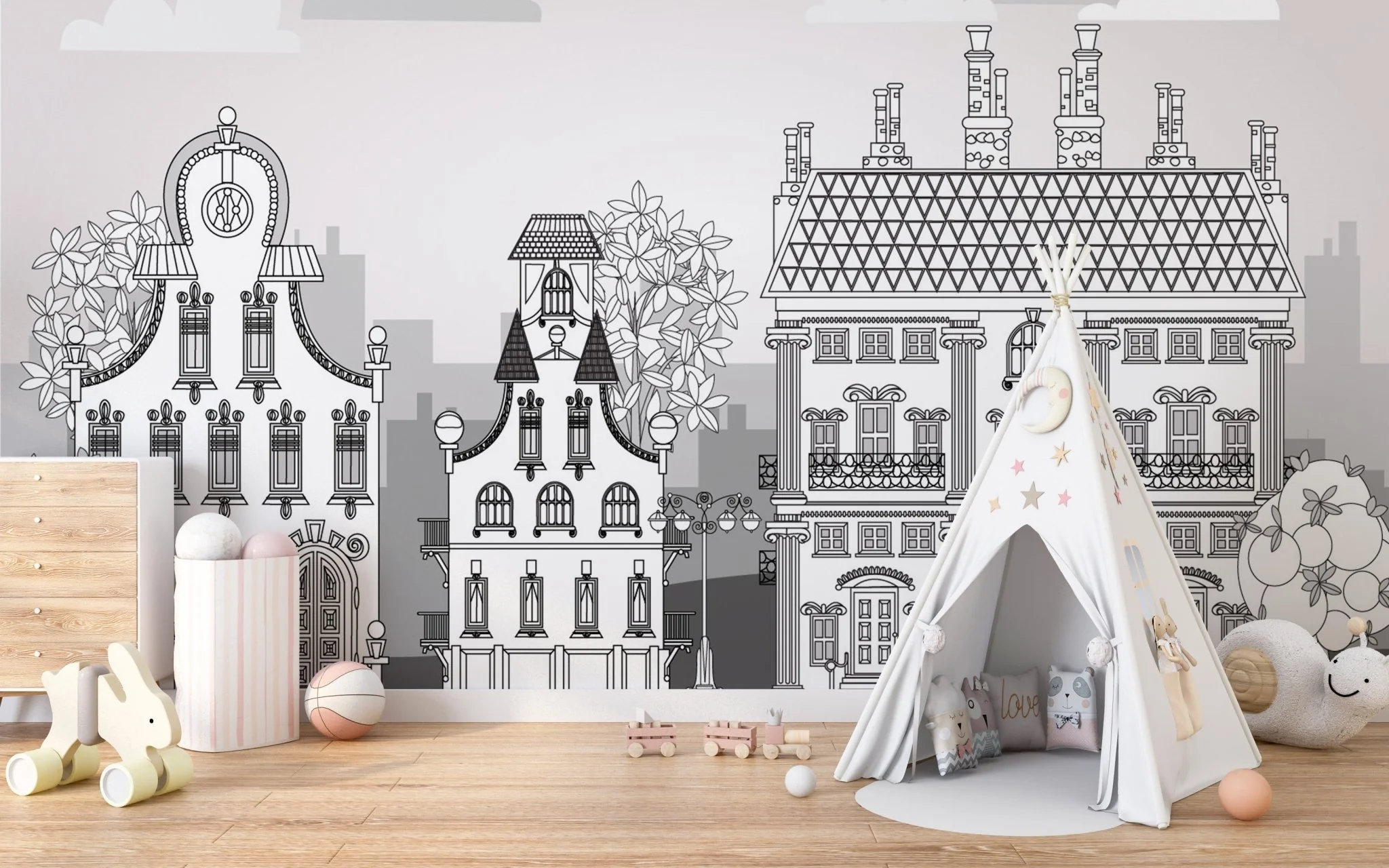 Ignite the creativity of your child with Town of Imagination Kids Wallpaper Murals. This enchanting mural has a bright and whimsical town filled with lovable characters, quirky buildings, and charming details that will encourage your children to never-ending stories and adventures. Suitable for playrooms, nurseries, or bedrooms, it turns any space into a vibrant hub of imagination and fun.